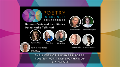 Session 5 - 6-7pm: Pecha Kucha Talks - Business Poets share their journeys with us - sparking insight, inspiration and ideas! Gudrun Otten, Phil Willcox, Ross Nichols, Rebekah Watson, Heather McArthur Coughlin, and Patricia Ahern
